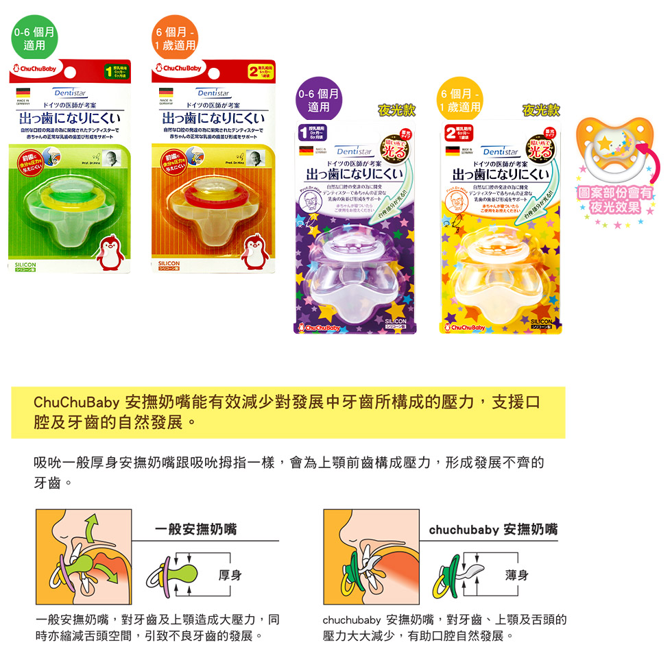 - 由德國齒科權威 Prof. Dr. Hinz 針對嬰兒牙齒生長發展需要而研發